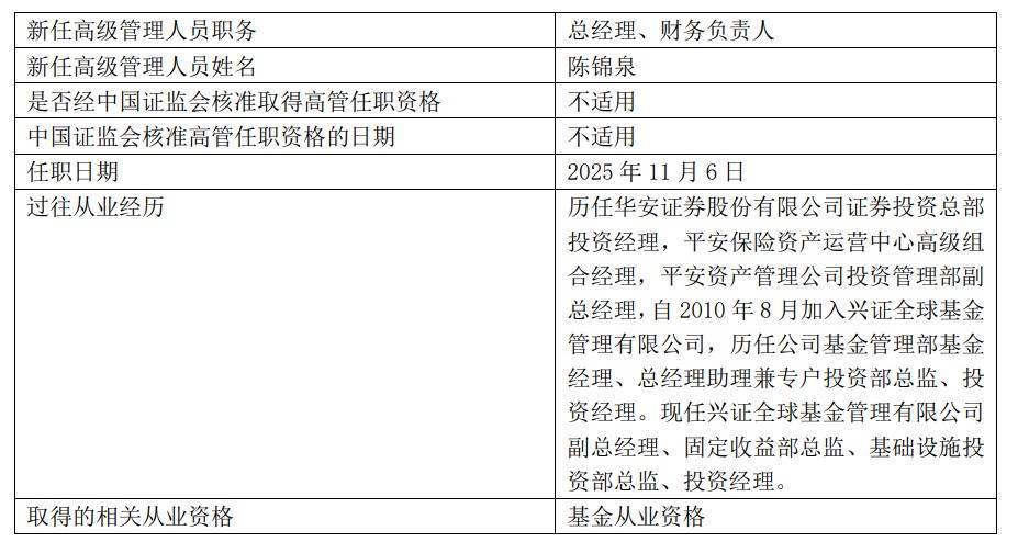 本年6月23日,兴证内行基金原董事长杨华辉因任职年齿原因辞任,庄园芳代任董事长职务,如今庄重升任董事长。